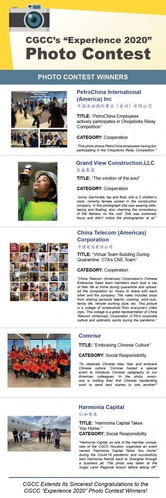 November 23rd, 2020, the “Experience 2020” Photo Contest successfully came to a close. Organized by China General Chamber of Commerce-USA