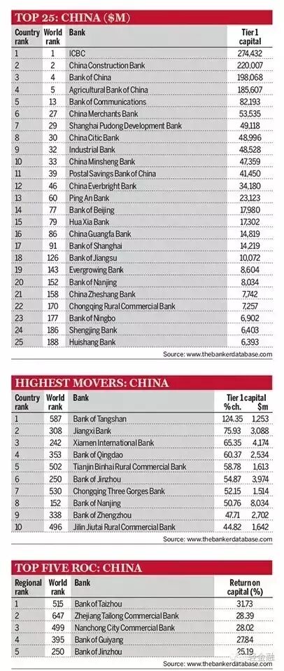 Unprecedentedly, ICBC, China Construction Bank, Bank of China and Agricultural Bank of China are all in the top five banks by Tier 1 capital worldwide. But the good news does not end there for Chinese banks, with many putting in a strong performance further down the ranking.
