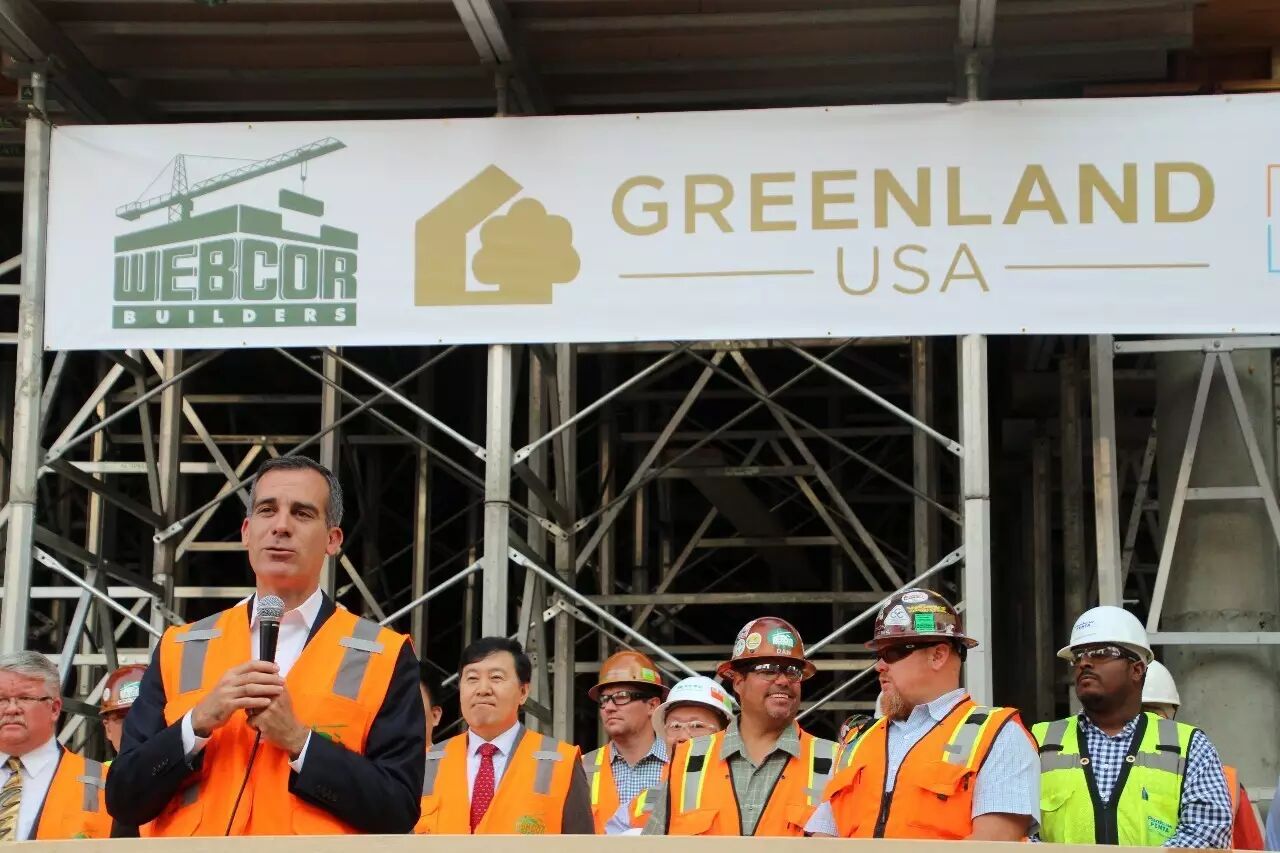 洛杉矶.绿地中心项目位于洛杉矶市核心商务区,是中国大型国企绿地集团进军北美市场的旗舰作品,总投资超过10亿美元,该项目在当地极具影响力。Eric Garcetti市长此次到访,意在传达洛杉矶市政府对于绿地中心项目的高度重视与大力支持。