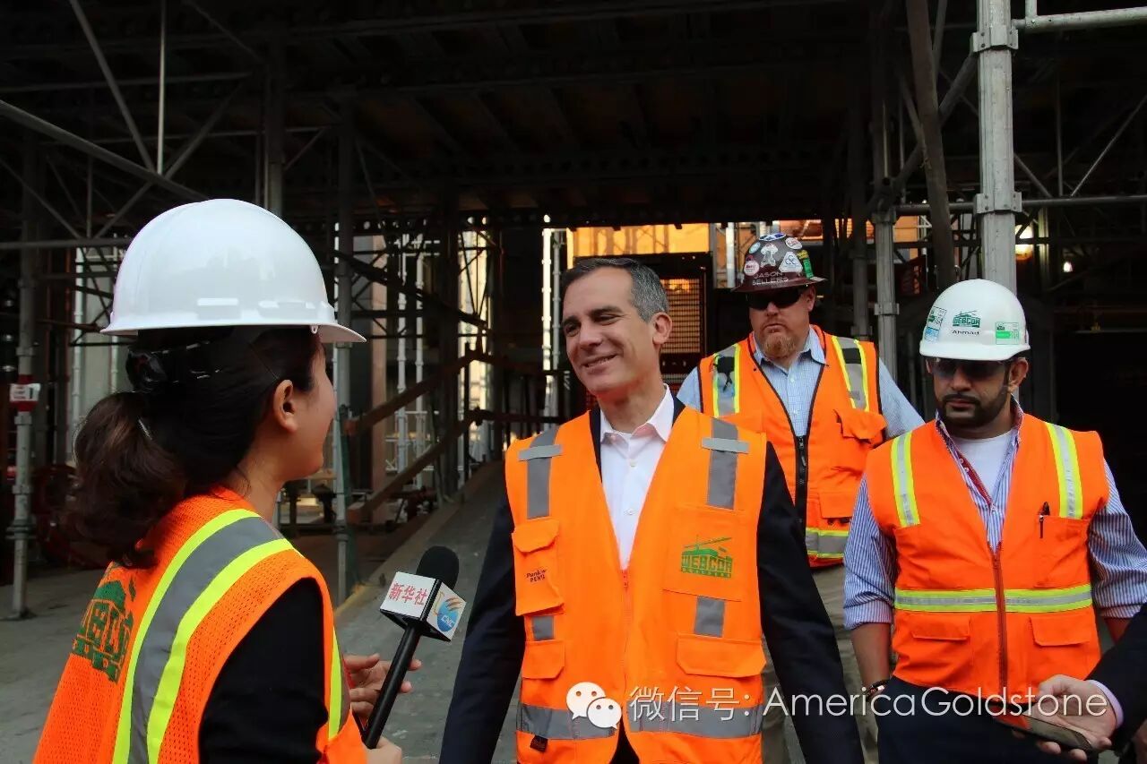 向Eric Garcetti市长介绍工程进度(摄于2A楼内)