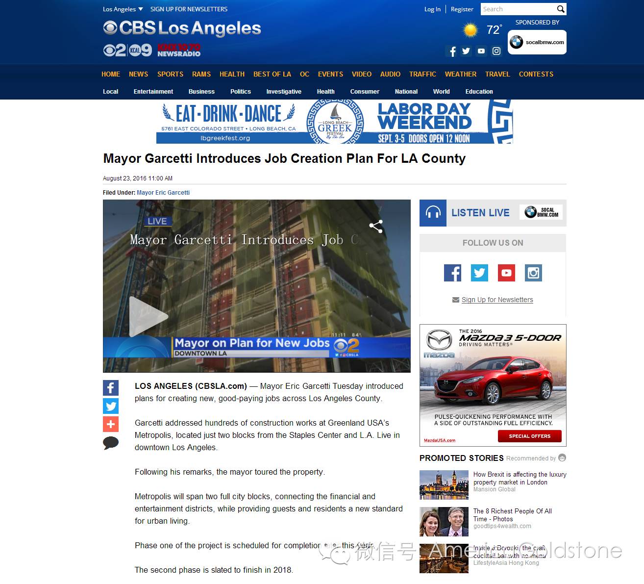 Eric Garcetti市长接受新华社记者专访