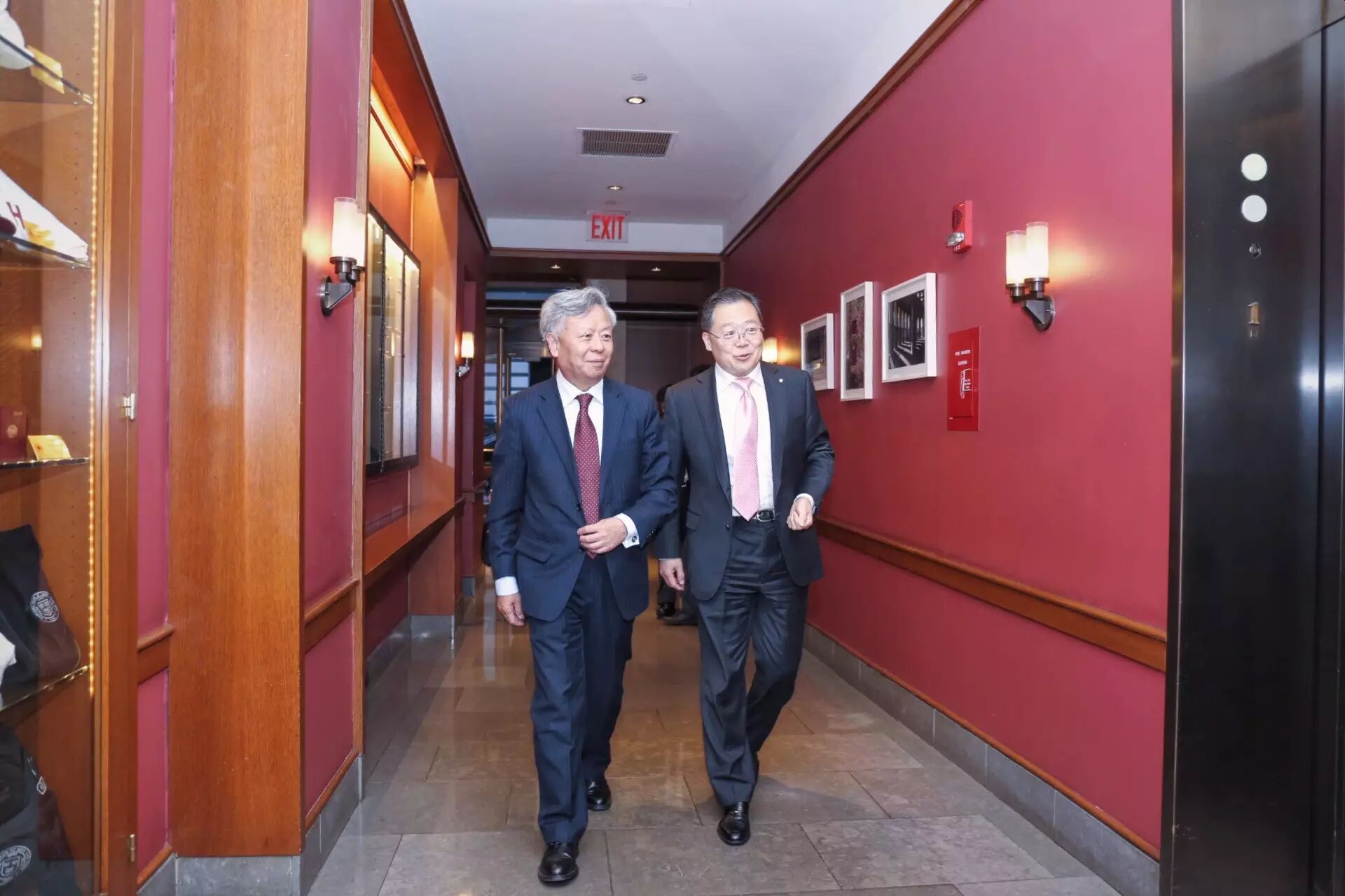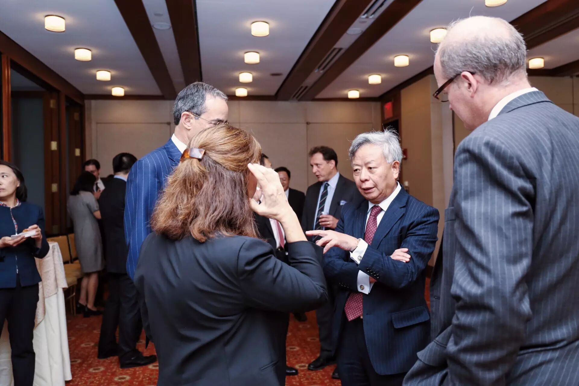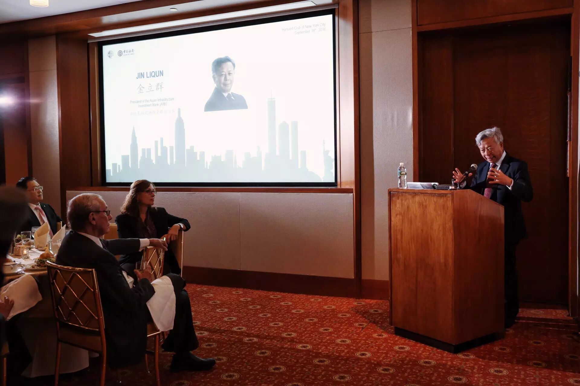 9月16日晚,美国中国总商会(以下简称总商会)特邀亚洲基础设施投资银行行长金立群做客美国中国总商会“名家讲坛”,在纽约哈佛俱乐部发表“一带一路及亚洲新机遇”的演讲。中国驻纽约总领馆经济商务室周善青参赞出席晚餐会,美国中国总商会会长、中国银行美国地区行长徐辰主持并致欢迎辞,中国人民银行美洲代表处首席代表宋湘燕,富国银行首席执行官Jonathan Weiss,Promontory Financial Group高级顾问、前摩根士丹利联席总裁Zoe Cruz等30余位中美工商界代表出席。