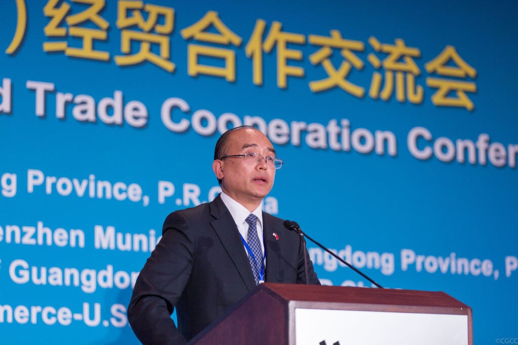 中国驻美大使崔天凯在致辞时说,地方合作是中美关系的重要组成部分,是中美关系的基石,也是两国合作最能惠及民生的最直接方式。广东省是中国的经济大省,一直站在中国改革开放的前沿。广东省也是中美省州合作的先行者和领跑者,是中美省州合作的典范。今天的经贸合作交流会更是中美政府部门、企业界广泛对接、深化合作的一次盛会,将广东省与美国的合作这艘巨轮装上更加强劲的引擎,开辟更加广阔的前景。