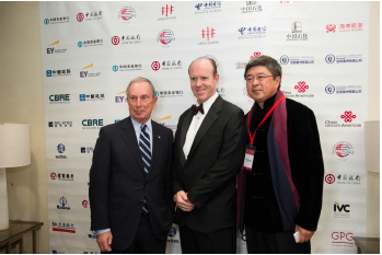 (上图左起依次为:迈克尔∙布隆伯格(彭博创始人、慈善家及纽约市第108任市长), 史蒂夫∙豪(安永美洲区执行合伙人),袁宁美国中国总商会会长、中建美国公司总裁)